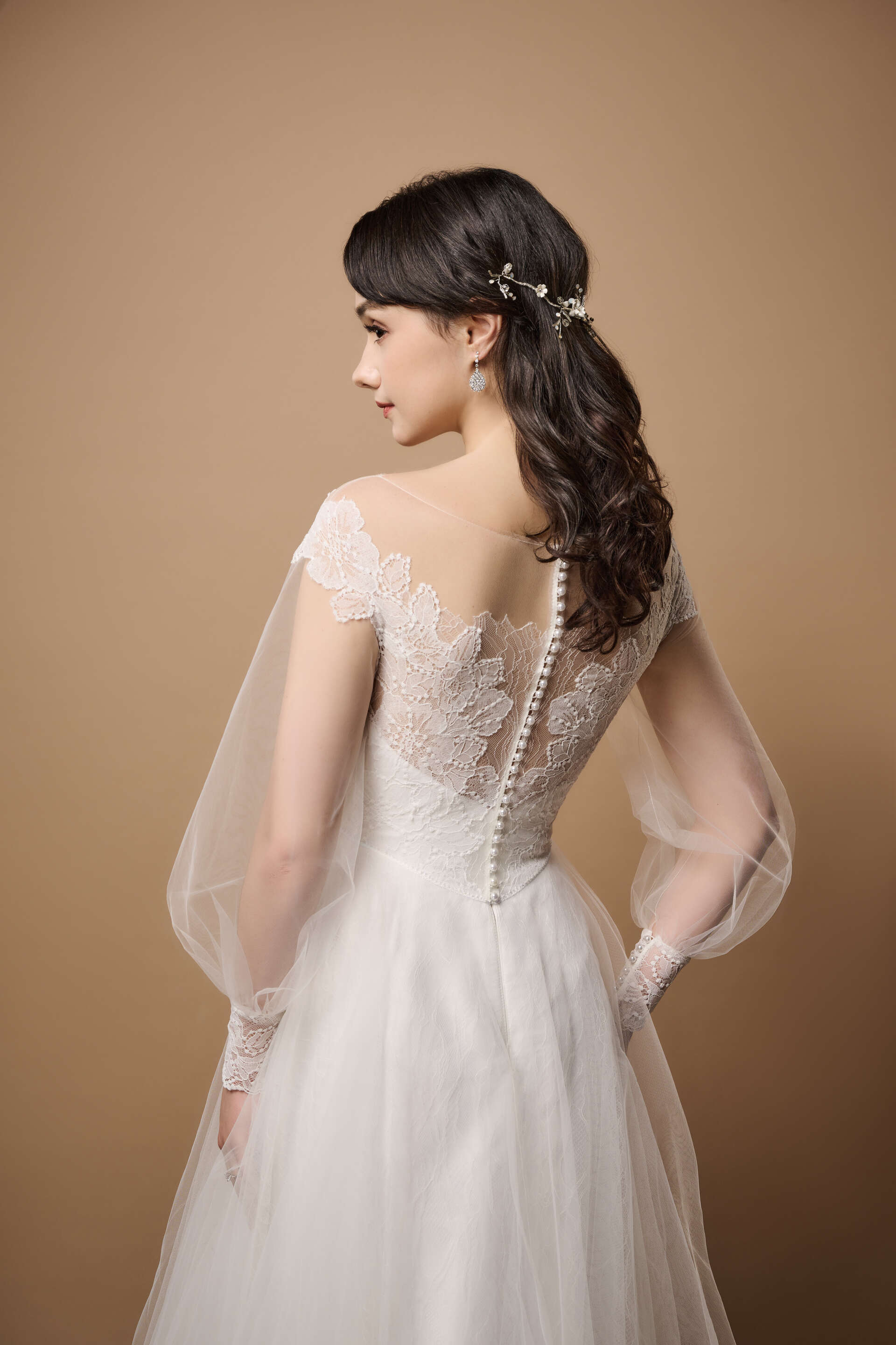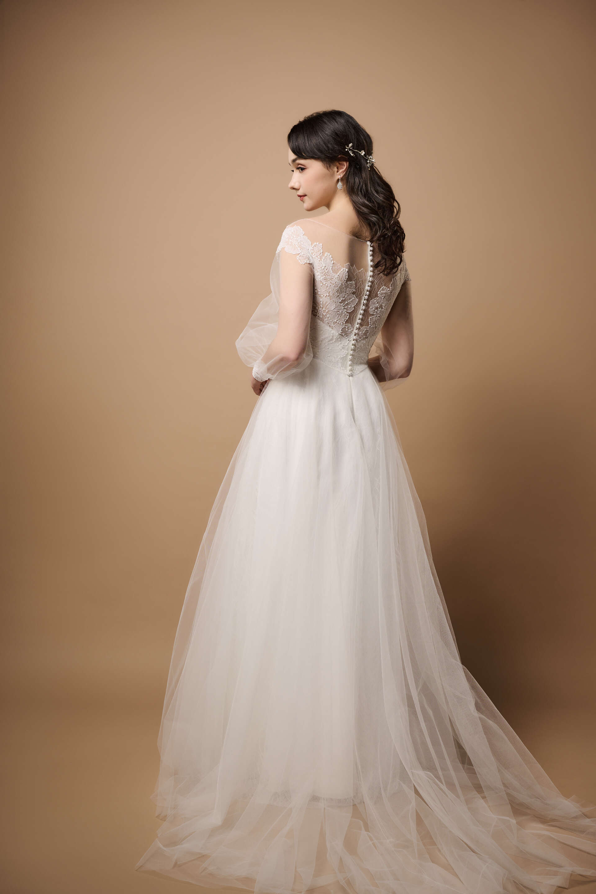 Selene Model: 23109 Sustainable fabric Satin (70% polyester, 30% recycled polyester) Poly lining (54% polyester, 46% recycled polyester) Tulle (100% recycled polyester) Add to inquiry Cart Share : Product Details